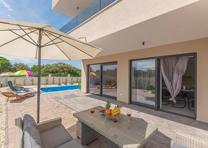 Villa Adriatic Sunset med 3 sovrum, som ligger 4 km från St. Barbaras kyrka, erbjuder en solig uteplats med utsikt över trädgården. Villan med 3 badrum, som har utsikt över en pool, bjuder in gästerna att besöka Šibeniks akvarium, som ligger ungefär 4 km bort.